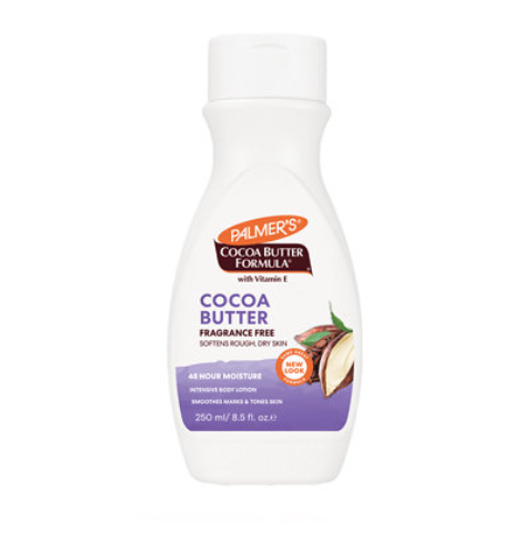 Softens and Smooth rough, dry skin with Palmer’s Cocoa Butter Formula Fragrance free daily body lotion, crafted with intensively moisturizing Cocoa Butter and Vitamin E. Specially formulated for sensitive skin.